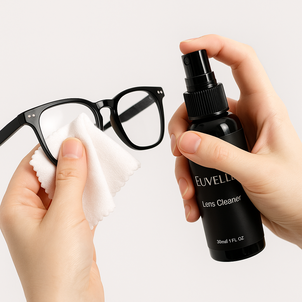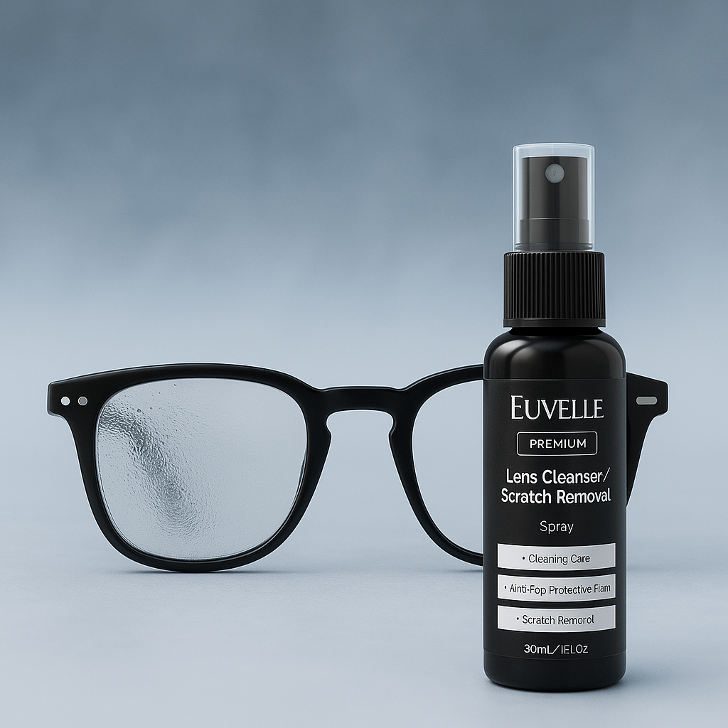 Not at all. The Euvelle Lens Cleanser dries quickly and wipes clean, leaving your lenses crystal-clear without streaks, fogging, or smudges.