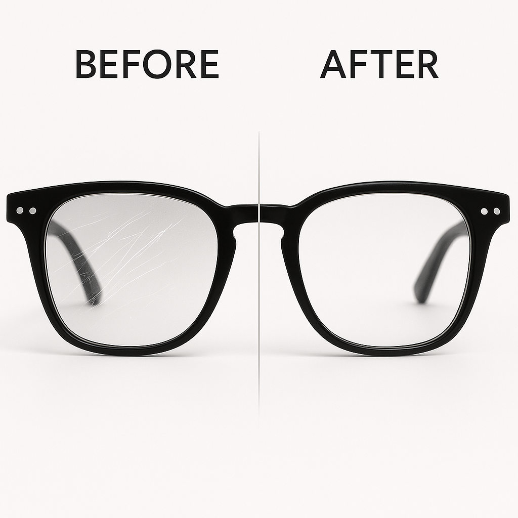 Yes! While it won’t fix deep gouges, our advanced formula helps minimize the appearance of light scratches, restoring clarity and making your lenses look refreshed and renewed.